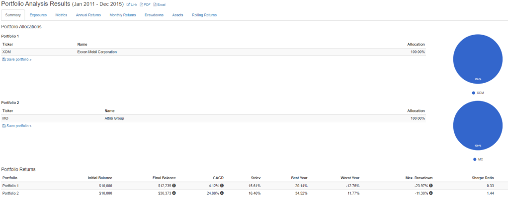 So, according to many, Exxon is about 30% less risky than Altria. And using volatility, it is, but here are the important questions; Which is the less risky business? What do the fundamentals actually say? What are the economics of each business? Which business is more cyclical or who has more consistent cash-flows? Does either business face disruption from new tech? Etc.